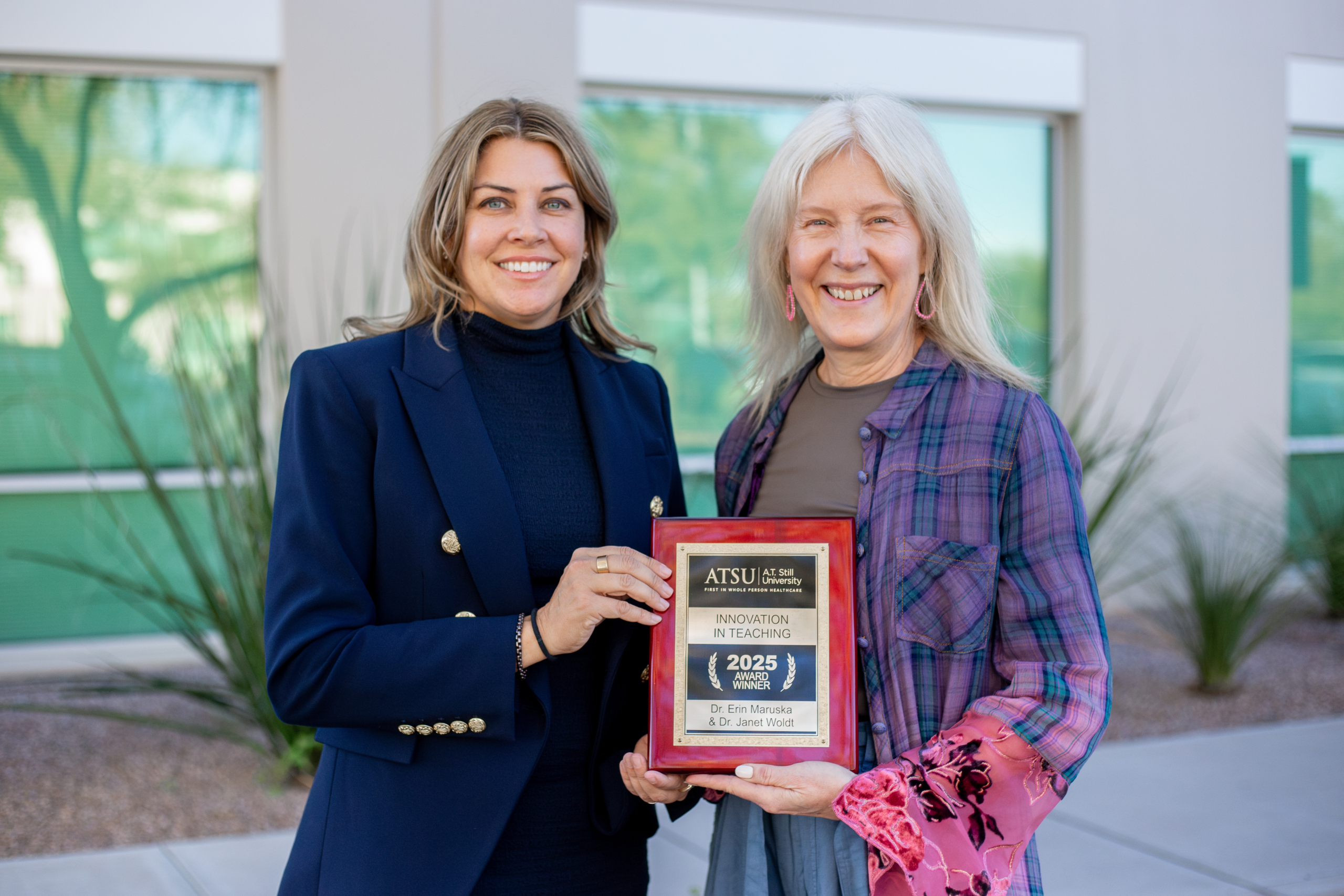 2025’s Innovation in Teaching for Learning Award was awarded to Erin Maruska, DMD, MPH assistant professor, and Janet Woldt, PhD, MS, associate dean, associate professor, ATSU-Arizona School of Dentistry & Oral Health (ATSU-ASDOH), for their project, “Innovative Approach to Professionalism and Ethics Education: AI Role-Playing.”