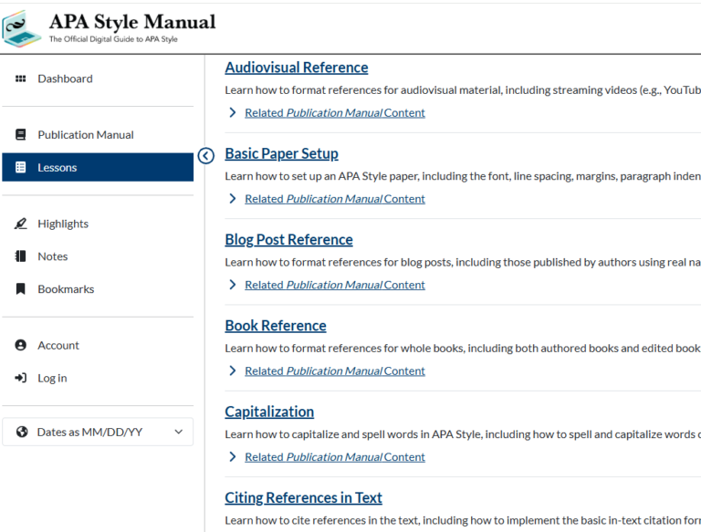 Beyond the rules of “who goes where” in a citation, the platform offers more than 70 interactive lessons. These lessons break down the Publication Manual into engaging, approachable modules that help you master complex writing skills without the headache. You may need to create a free account if you would like to work through the lessons.