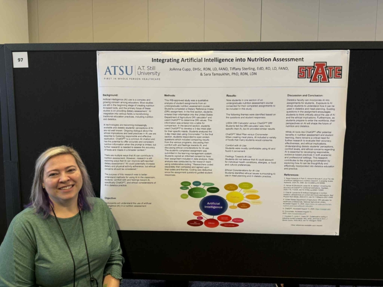 A.T. Still University-College of Graduate Health Studies (ATSU-CGHS) faculty member Sara Tamsukhin, PhD, RDN, LDN, recently presented three posters at the Academy of Nutrition and Dietetics Food and Nutrition Conference.