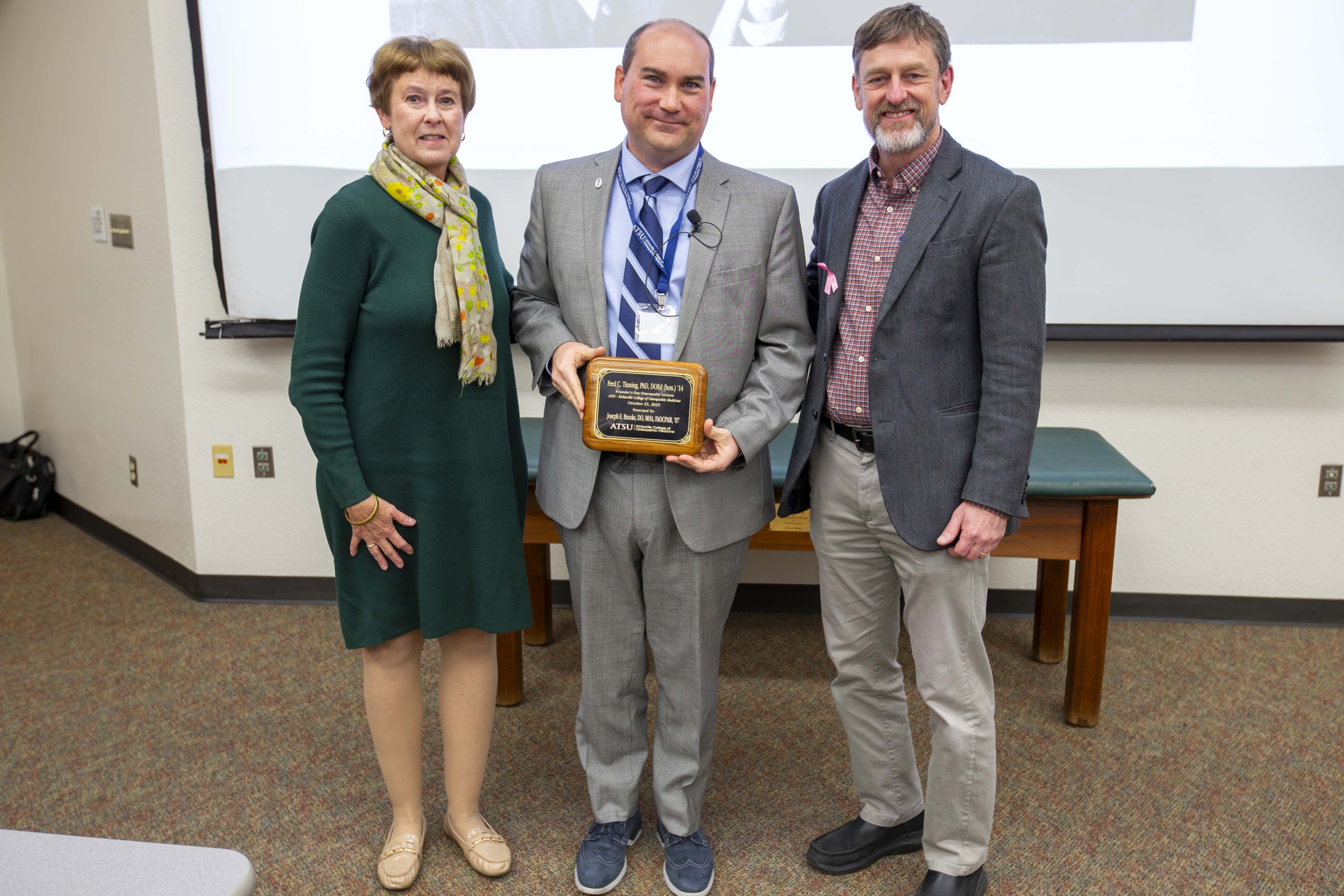 A.T. Still University-Kirksville College of Osteopathic Medicine (ATSU-KCOM) alumnus Joseph E. Brooks, DO, MHA, FAOCPMR, FAAPMR, ’07, an experienced osteopathic physical medicine and rehabilitation (PM&R) specialist dedicated to providing comprehensive care to patients, delivered the 2025 Fred C. Tinning, PhD, DOEd (hon.) ’14 Founder’s Day Osteopathy Lecture, titled “Osteopathic Tenets: Philosophical Roots and Modern Applications.”