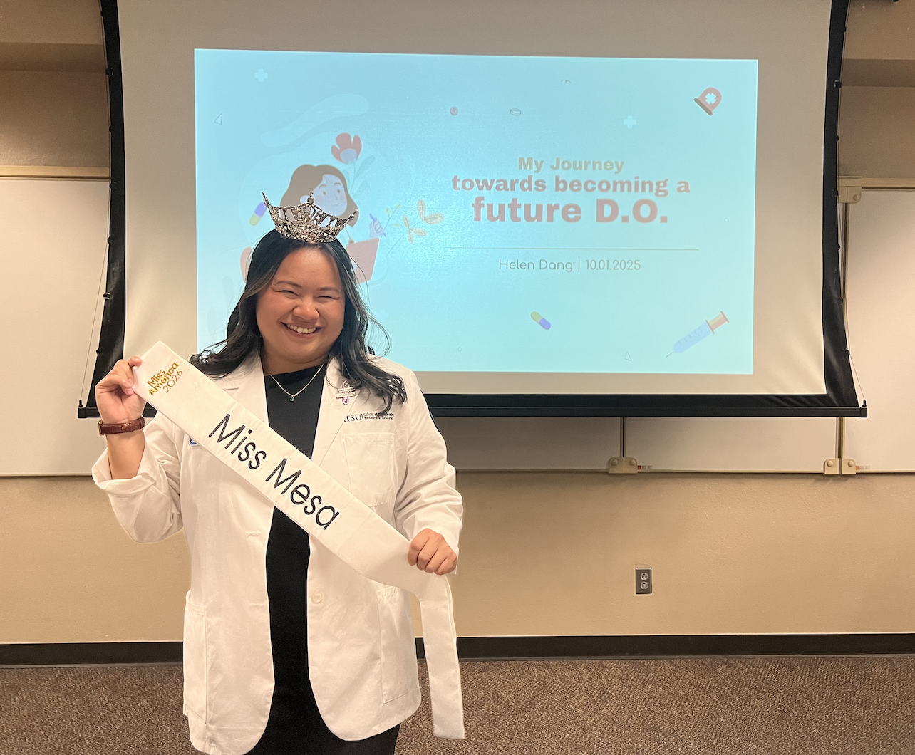 A.T. Still University-School of Osteopathic Medicine in Arizona (ATSU-SOMA) student Helen Dang, OMS II, has been crowned Miss Mesa 2026. She will represent the city in the Miss Arizona pageant next June, the state-level preliminary to the Miss America competition.