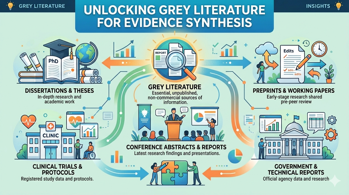 In the world of evidence synthesis (think scoping and systematic reviews), the most visible research is often just the tip of the iceberg. To conduct a truly comprehensive review, researchers must look beneath the surface at grey literature.